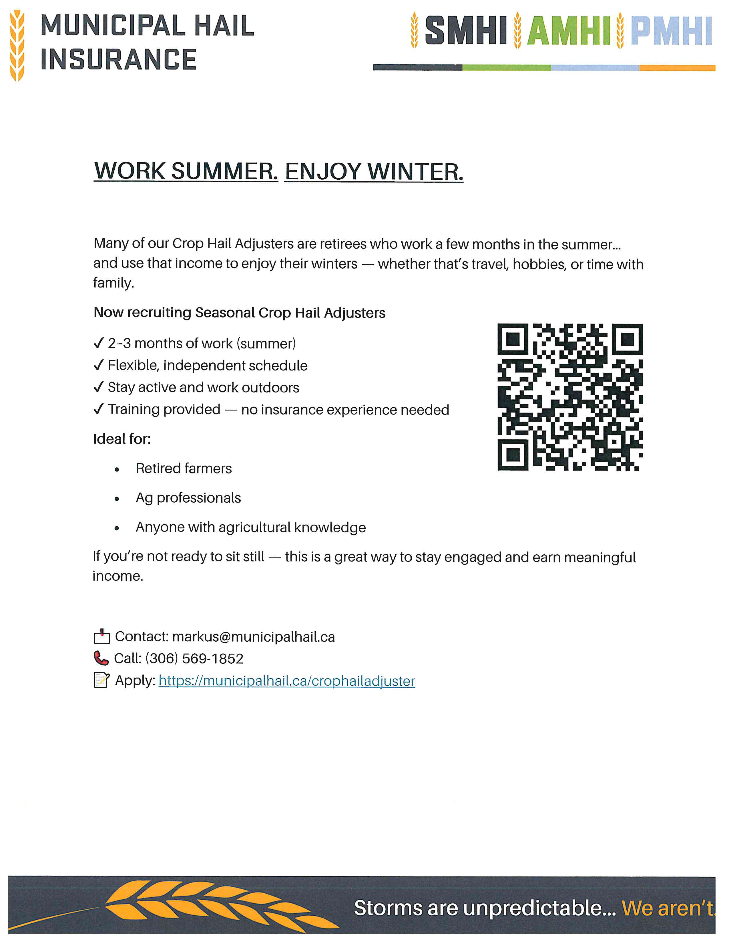 Muncipal Hail Insurance Seasonal Crop Adjusters: